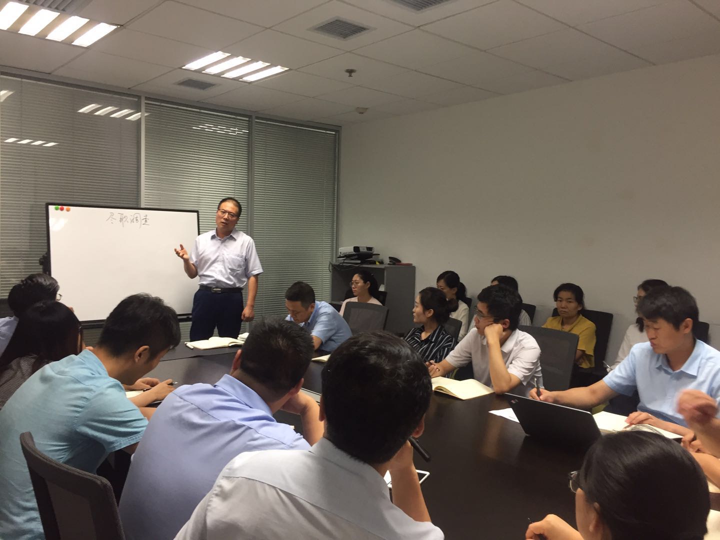 7月27日,在《西金大講堂之擔(dān)保業(yè)務(wù)盡職調(diào)查指引》業(yè)務(wù)培訓(xùn)班上,胡國棟作為培訓(xùn)班開課第一期的主講人,前來參加培訓(xùn)的同事把大會(huì)議室擠得滿滿當(dāng)當(dāng),會(huì)議室的椅子被占滿了,同事們就主動(dòng)拉椅子進(jìn)來聽,直至實(shí)在沒辦法放了,小伙伴們就站著聽。而這堂課培訓(xùn)后的調(diào)查滿意度竟高達(dá)99%。